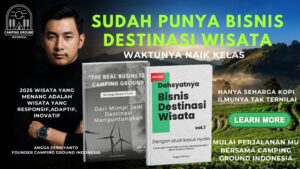 Inilah yang dijelaskan secara rinci dalam eBook “Dahsyatnya Bisnis Destinasi Wisata” maupun “Bisnis Camping Ground”—panduan lengkap bagi siapa pun yang ingin membangun usaha wisata berkelanjutan dari nol.