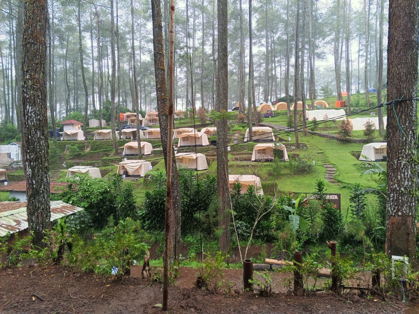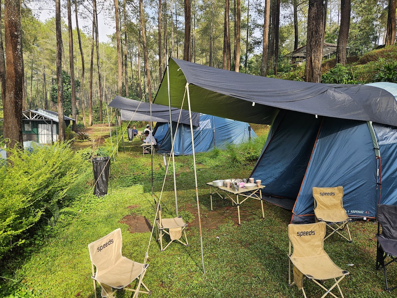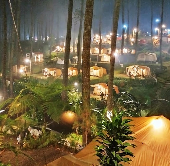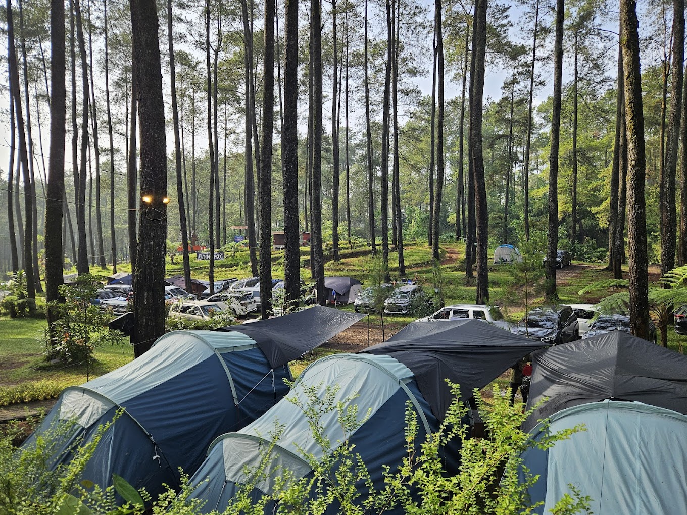 Begitu tiba, suasana rindang hutan pinus langsung menyambut. Area camping tertata rapi dengan jalur setapak yang memudahkan pergerakan, sementara jarak antar tenda dibuat cukup jauh untuk menjaga privasi setiap tamu. Saat malam tiba, lampu-lampu gantung yang tersebar di antara pepohonan menciptakan suasana hangat dan romantis, cocok untuk duduk bersantai sambil menikmati udara pegunungan.